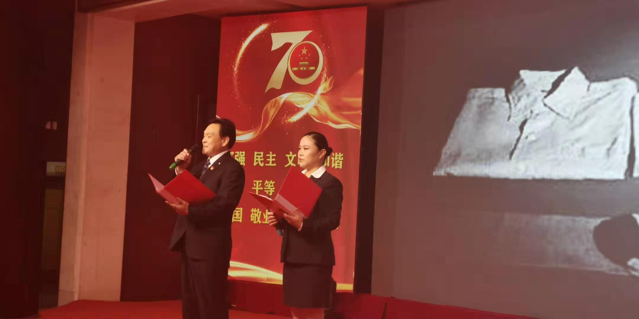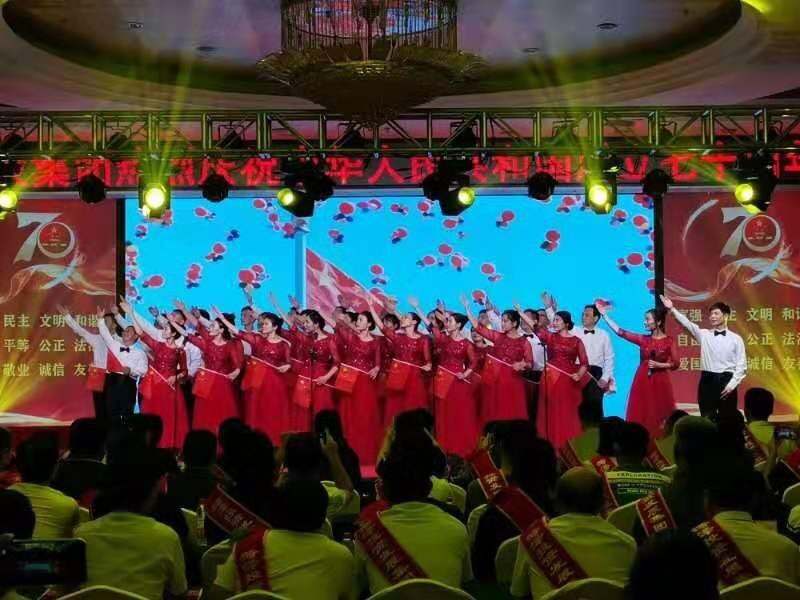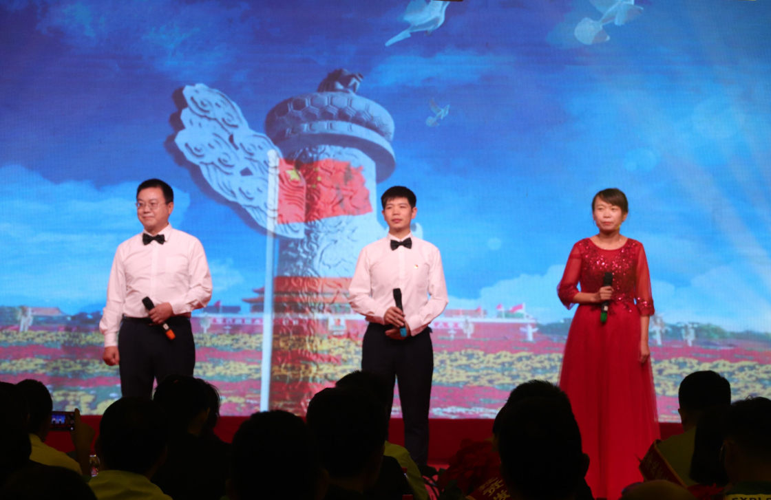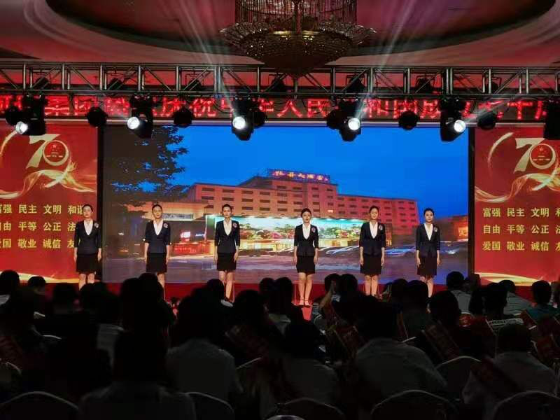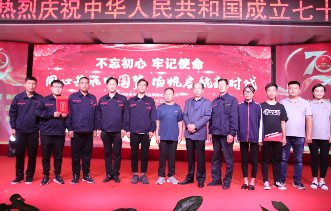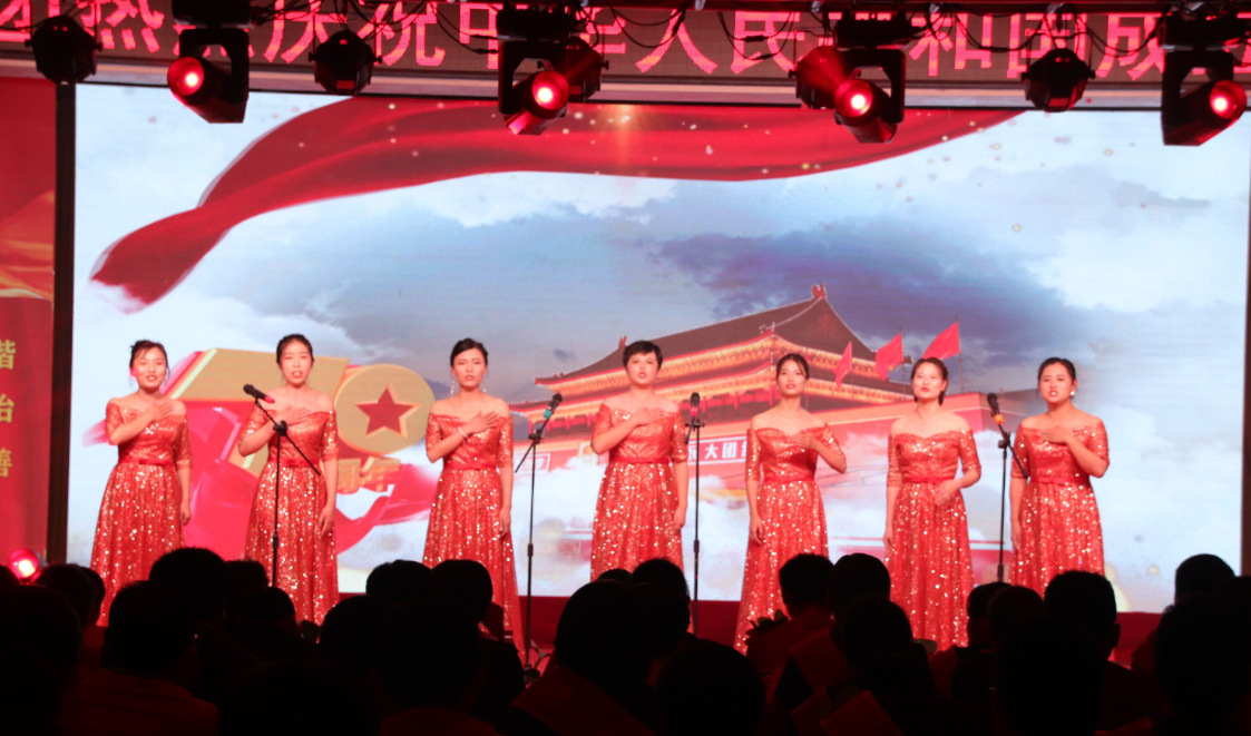 舞蹈《bar bar bar》 三句半《祖國(guó)頌》 小合唱《今天是你的生日》 歌曲《中國(guó)》 朗誦《中華頌》 歌曲《最美的歌兒唱給媽媽》 大合唱《歌唱祖國(guó)》 公司黨委書記、董事長(zhǎng)徐文芹與演出人員合影