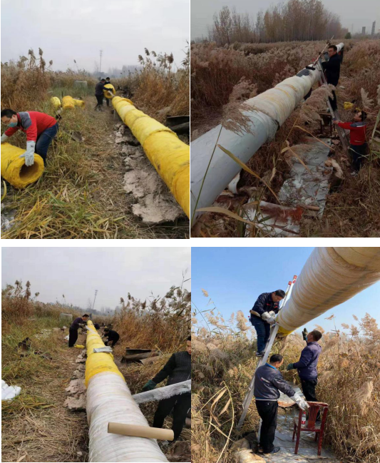 丹陽東路盡頭有一段約40米的管道外保溫破損,困擾公司已久,遲遲無法維修。由于該段管道位于一片未開發(fā)的沼澤地,長滿了近2米高的蘆葦,更有一片方圓近百米的野水坑,惡劣的地理環(huán)境使人員無法踏足。11月22日,困擾永恒蒸汽公司很久的難題終于被攻克了。