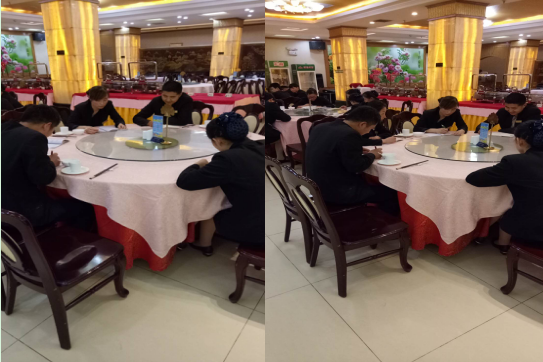 牡丹大酒店餐飲部進(jìn)行大型中餐宴會接待標(biāo)準(zhǔn)培訓(xùn)考核